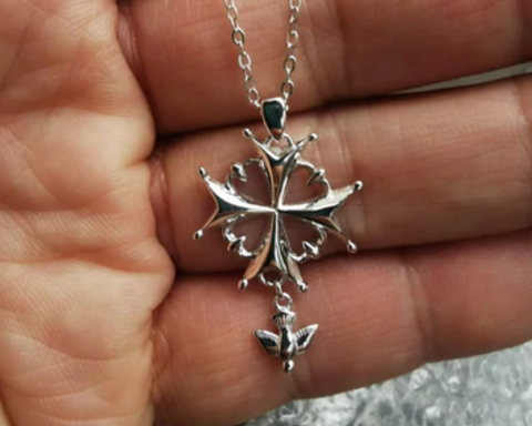 Of course, they represent the Huguenot cross. It first came about in 1688 after the religious persecution under Louis 14th of France, which is when the trilogy is set.